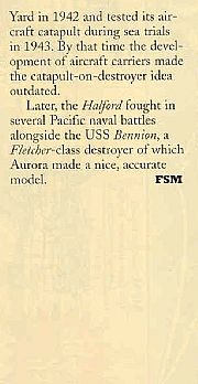 Fine Scale Modeler magazine ran an interesting story on the Aurora version of the U.S.S. Halford. The issue date was July, 1997 (ICD08285) and included interesting information such as the model was not an actual model of the Halford at all. In fact, it contained references to other ships it more closely resembled. Here is the article in full for you to look at.